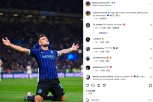 复出双响!劳塔罗晒滑跪庆祝照:很高兴重返球场,和队友并肩作战