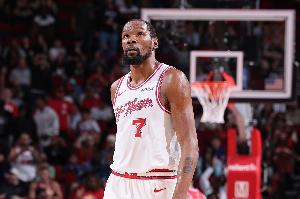 本场比赛,火箭球星杜兰特表现出色,进攻高效但同时也很全能,但球队还是输球,打了39分钟,投篮18中13,三分球1中0,罚球9中7,空砍33分7篮板7助攻1抢断2盖帽。