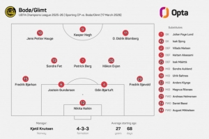 体育资讯3月18日讯 欧冠1/8决赛次回合,博德闪耀在客场挑战葡萄牙体育。本场比赛,博德闪耀的首发阵容足以让外界惊讶,因为这是他们连续6场欧冠比赛排出了同样的首发阵容,为赛事历史首队。